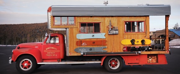 This retired 1953 GMC Fire Truck now serves as a converted home-on-wheels for professional snowboarder Austin Smith.